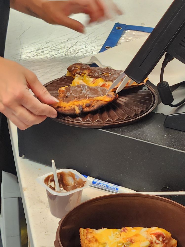 2. Шоколадный пудинг поверх пиццы. Коллега автора этого фото явно живет в мире, где вкусовые рецепторы вышли из чата.
