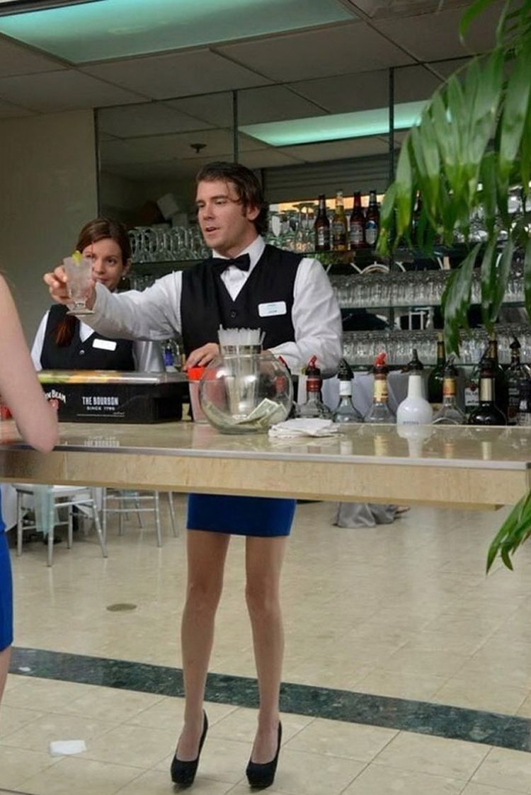 Мастер-класс по тому, как превратить пропущенную тренировку в зале в повод для шутки. Сверху - серьезный парень, снизу - эффектная обувь на каблуке. 👠