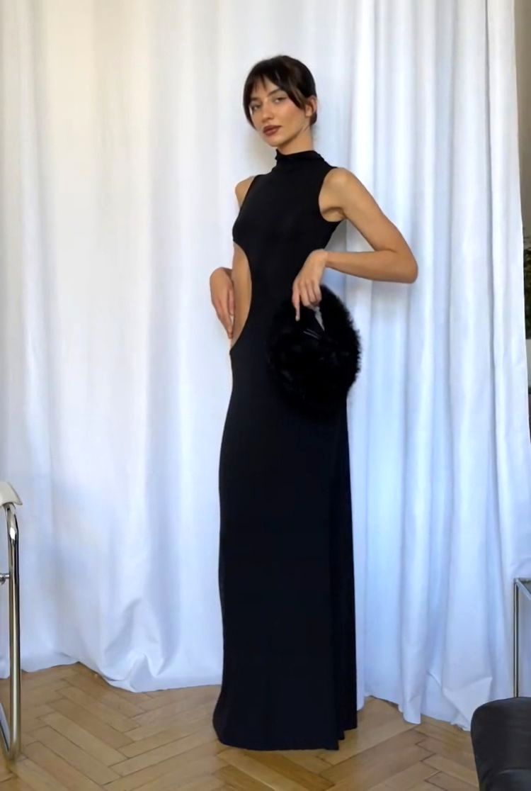 Магия тонкой талии здесь кроется в особенностях кроя. Темные вставки по бокам создают иллюзию силуэта «песочные часы», хотя на самом деле часть фигуры скрыта за цветом ткани. ⌛