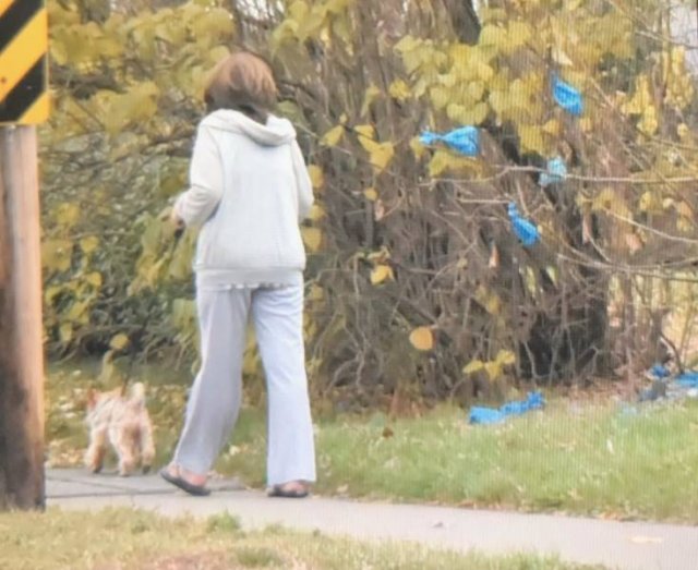 Люди в собачьем парке слишком ленивы, чтобы выбросить пакеты для собачьих экскрементов в мусорное ведро, поэтому они вешают их на забор