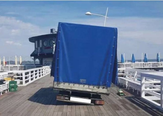 А этот парень, проигнорировавший знак «Въезд запрещен», въехал на деревянный пирс и попал в эту передрягу - все потому, что ему было лень закатить свой груз на тележке