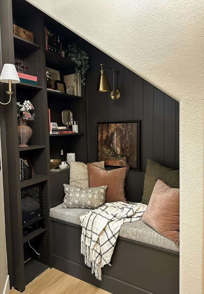 Уголок для чтения, созданный парой с нуля. Настоящее воплощение детской мечты об уютном местечке, где можно спрятаться с книгой от всего мира.
