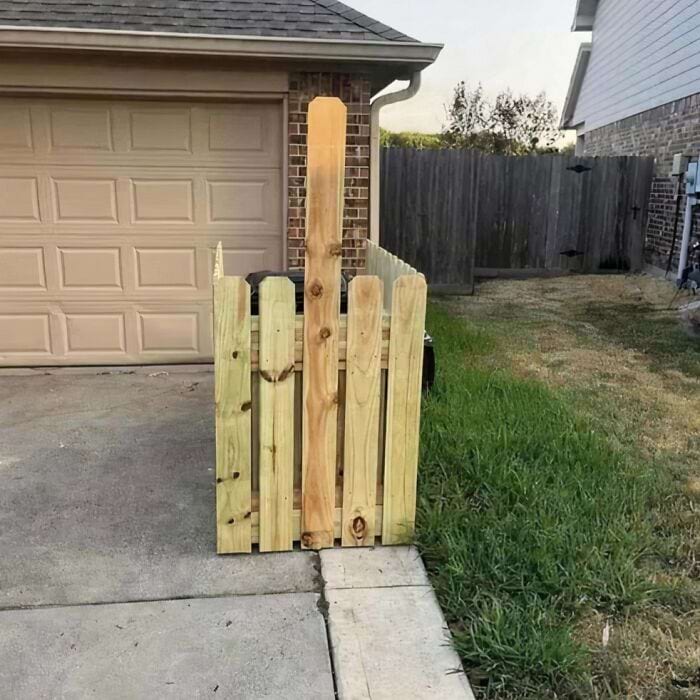 Сосед попросил закрыть мусорные баки забором ради эстетики. Что ж, теперь он наслаждается этим видом каждый день.