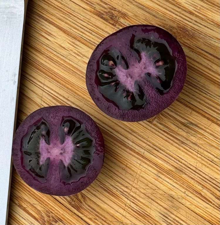 Маленький повод для гордости: первый в жизни фиолетовый помидор, который выглядит как экзотическая ягода.