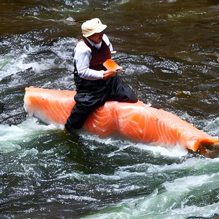 Автор запроса хотел увидеть сурового рыбака с добычей, но нейросеть рассудила иначе, превратив процесс в странный и пугающий перформанс.
