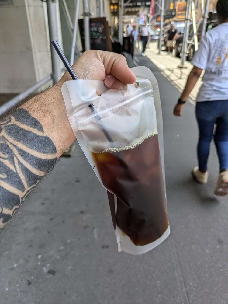В Нью-Йорке начали подавать холодные напитки в пластиковых пакетах. Для Азии или Мексики это привычное дело, но для жителей мегаполиса такой формат пока выглядит как странный эксперимент из прошлого.