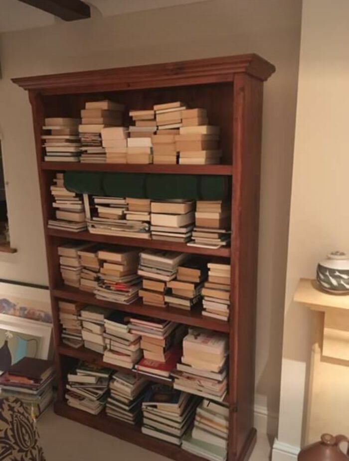 Определенно, это не самый стандартный способ хранить литературу и использовать мебель