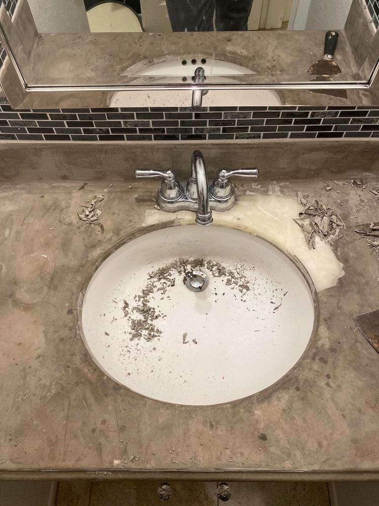 Цементные иллюзии: Дружеское напоминание: заливать столешницу в ванной бетоном без подготовки - идея, о которой вы пожалеете в первый же день.