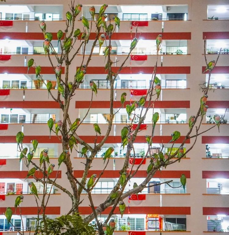 Нет, это не листья. Это плоды «попугайного дерева». А вы как думали, откуда берутся птицы?