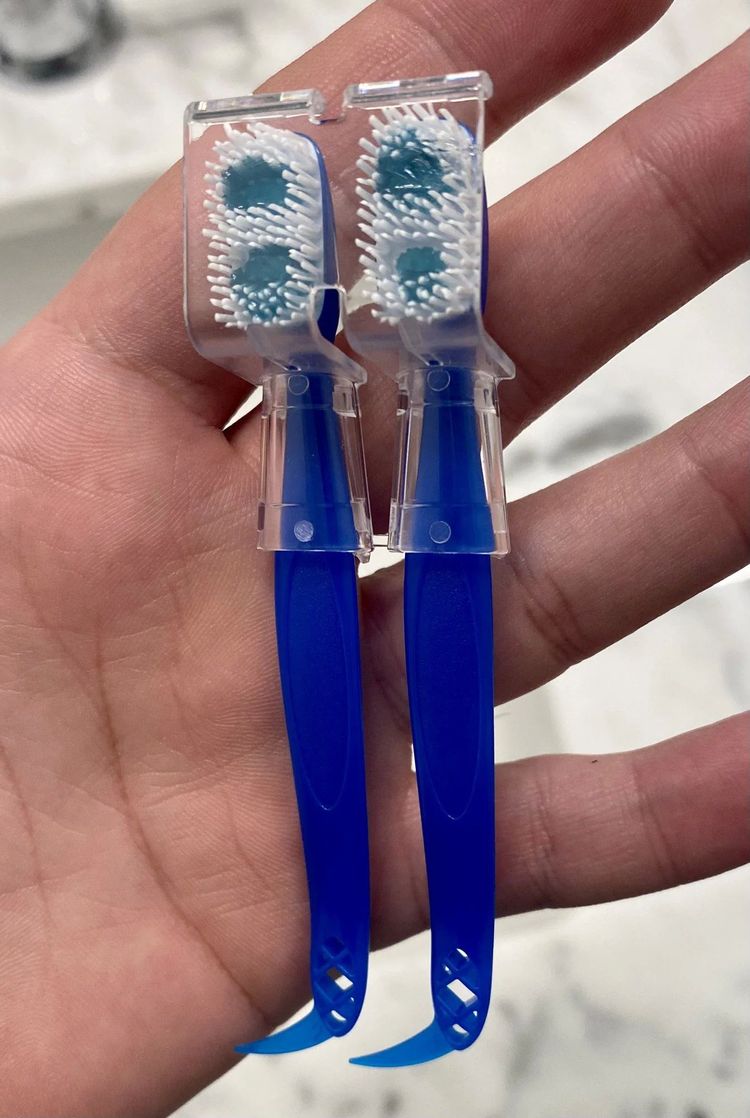 Зубная щетка 2-в-1: Одноразовый пластиковый гаджет с пастой внутри.
