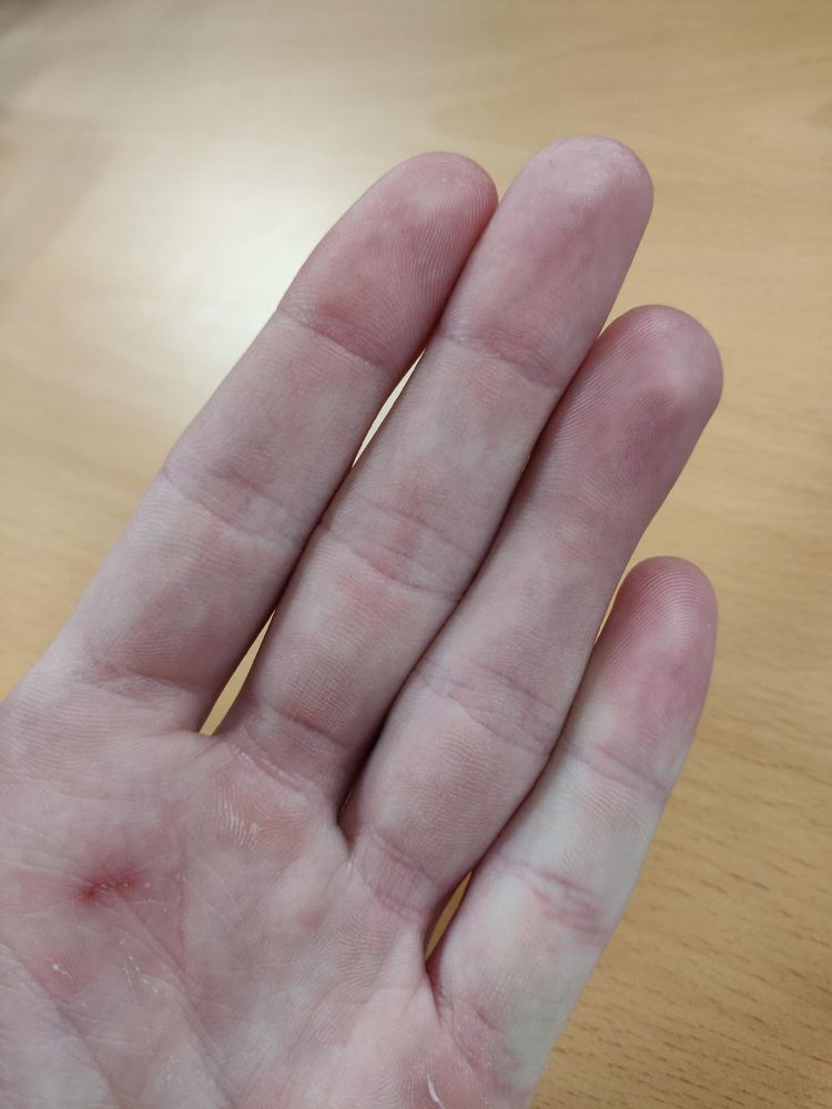 Гладкий палец: Безымянный палец без единой морщинки из-за долгой неподвижности.