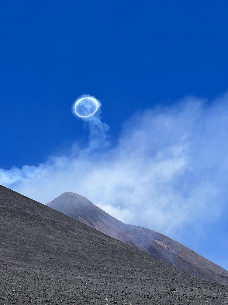 Вулканическое кольцо: Идеально ровный круг дыма, выпущенный Этной.