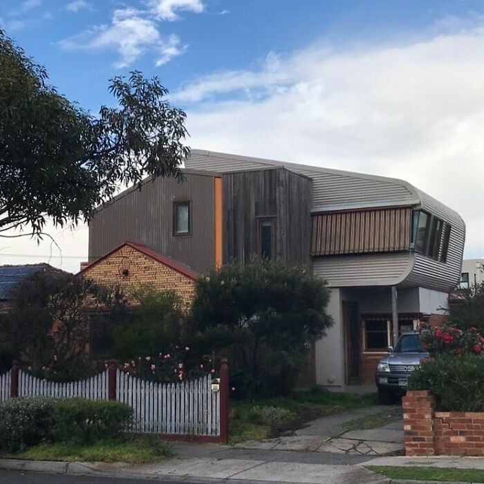 Франкенштейн-хаус. Такое ощущение, что дом бережно собирали по кусочкам из остатков соседних строек