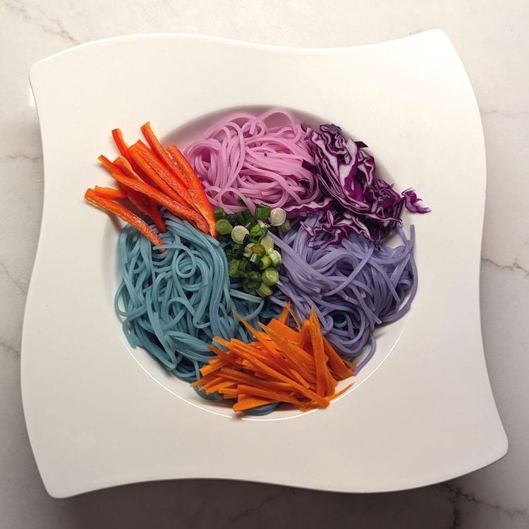Цветная лапша: Домашняя паста, окрашенная соком красной капусты, превращает обычный обед в сеанс цветотерапии.