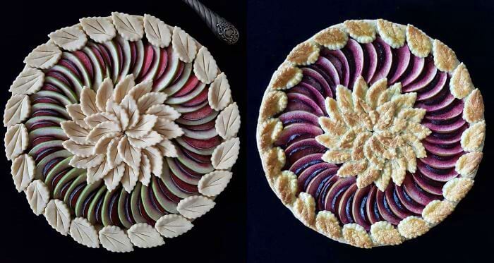 Фруктовый пирог: Яблоки и сливы, выложенные с точностью до миллиметра. Настоящая геометрия вкуса.