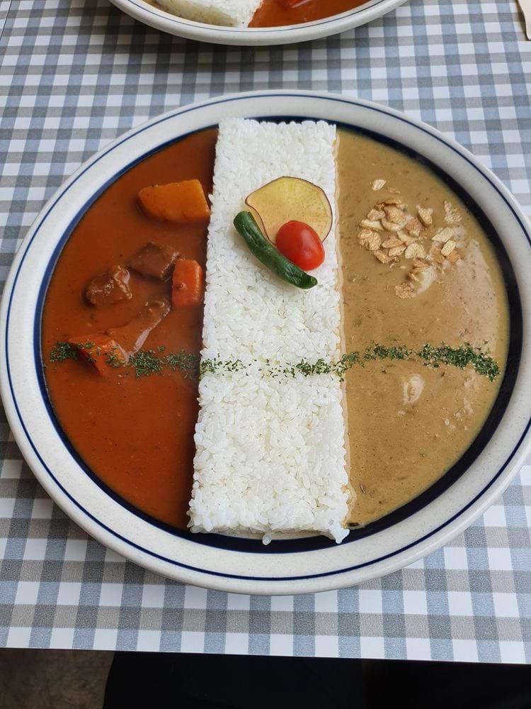 Корейский карри: Блюдо из города Сувон, где подача превращает соус и рис в полноценную ландшафтную композицию.
