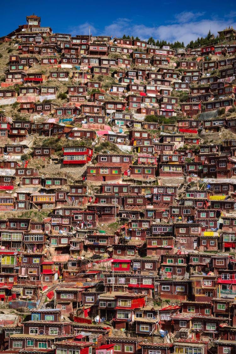 Тибетское спокойствие: Уютные дома, рассыпанные по склону холма