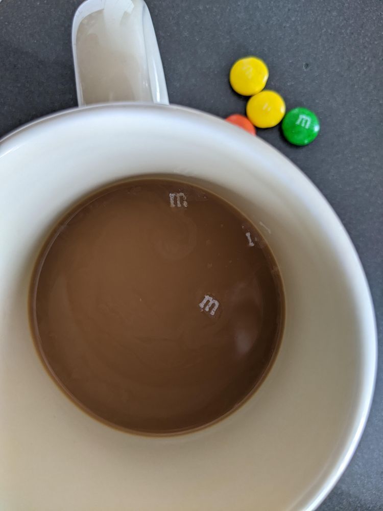 Если бросить M&M’s в горячий напиток, шоколад и сахарная глазурь растворятся, а логотипы останутся плавать на поверхности. Буквы печатаются съедобными чернилами на основе шеллака, который не боится воды и высоких температур.