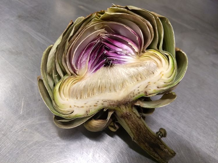 Геометрия разрезанного пополам артишока напоминает сложный чертеж. Глядя на этот экзотический овощ, сложно представить, что он съедобен. К слову, в некоторых странах Южной Америки его и вовсе считают агрессивным сорняком.