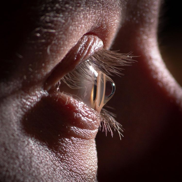 Снимок глаза со странным «наростом» - не диагноз. Это всего лишь слеза, снятая под определенным углом. Когда лицо находится параллельно полу, жидкость скапливается в центре роговицы, создавая эффект линзы.