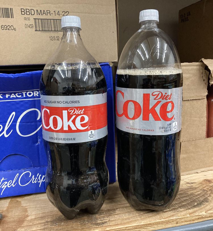 Забытая в морозилке двухлитровая бутылка раздулась до неузнаваемости, но не лопнула. Эластичный пластик выдержал расширение льда, превратив стандартную тару в гигантский бочонок. При этом изменилась даже форма этикетки.