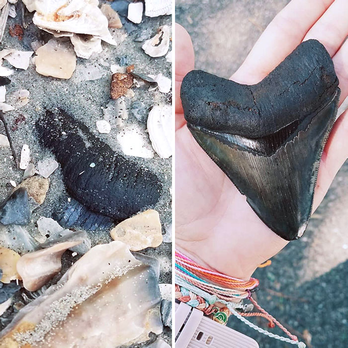 Одна американка годами прочесывала пляжи в поисках зуба мегалодона. А нашла его… благодаря физиологии мужа. Супруг попросил остановить машину в Вирджинии «в кустиках», и пока он решал свои вопросы, женщина буквально споткнулась о сокровище древней акулы. К слову, коллекционеры готовы отдать за такой артефакт до 100 000 рублей.