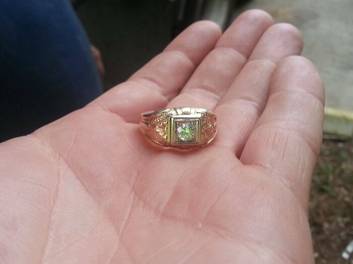 Сотрудник промышленной клининговой компании нашел в канализационном стоке кольцо с внушительным камнем. По предварительным оценкам, это 14-каратное золото и бриллиант в полкарата. По правилам компании, всё найденное в грязи принадлежит тому, кто его достал. Грязная работа - блестящий результат!