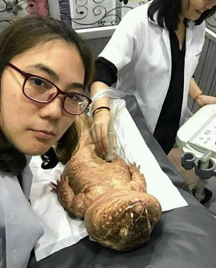 Обезьяна решила поиграть в Айболита. Хотя ситуация всё равно вызывает вопросы.