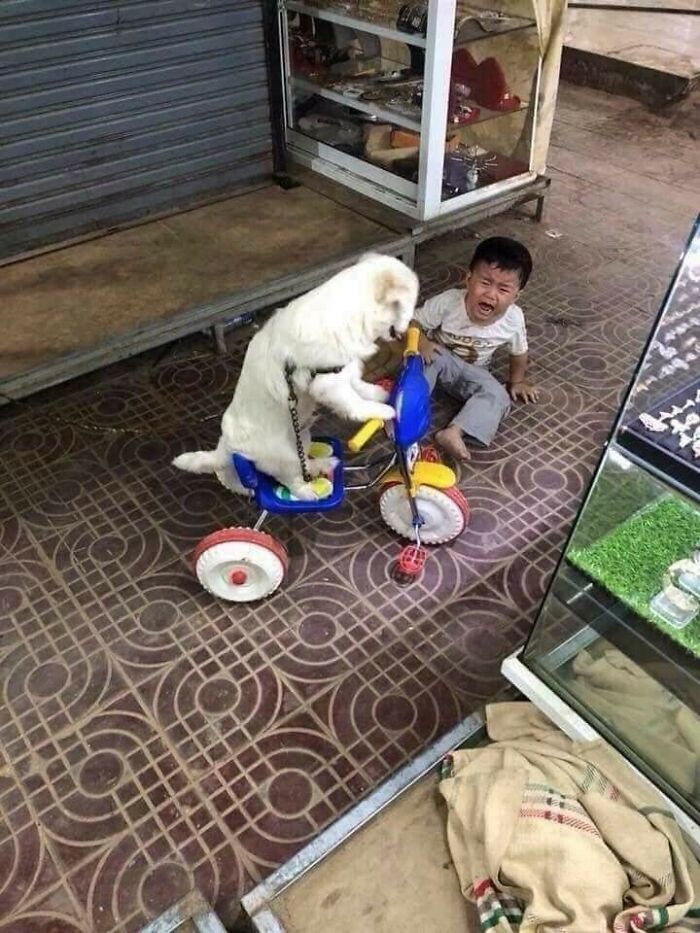 Собака уже за рулём, ребёнок - в растерянности. В этой истории всё пошло не по плану.
