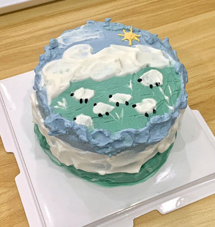 Овечки на лугу - такой нежный торт, что хочется любоваться им вечно.
