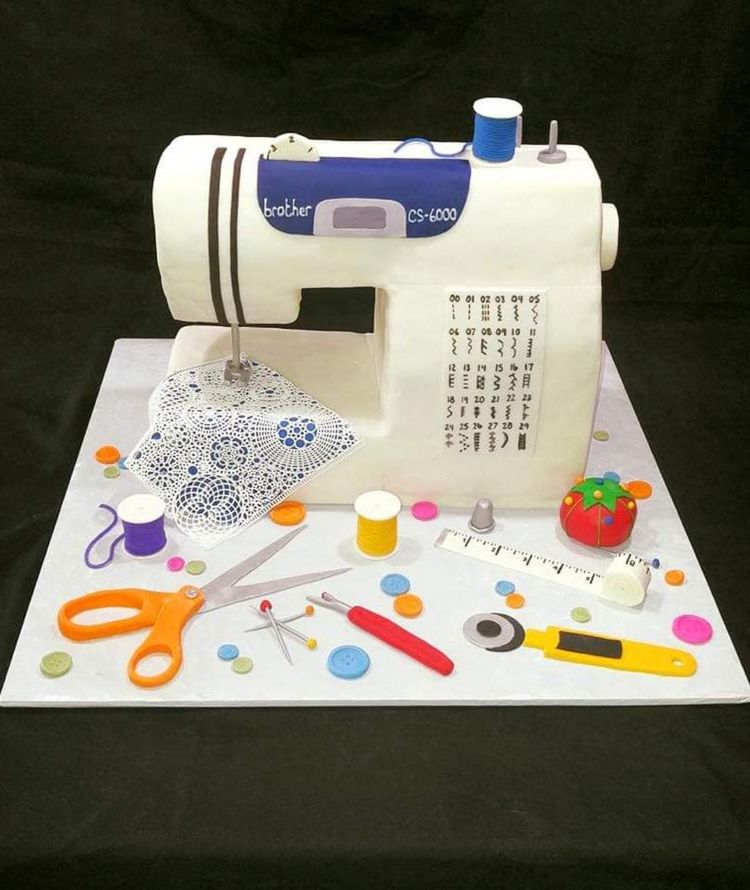 Торт для мамы-швеи к её 50-летию, с трогательными деталями, напоминающими о её прошлом.