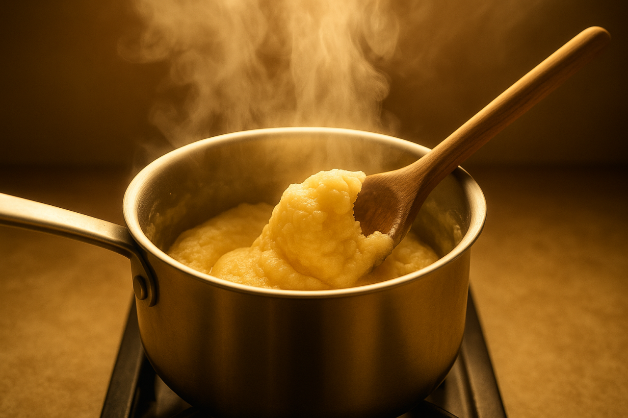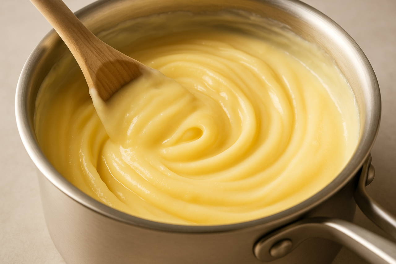 • Слишком жидкий крем: прогрейте, добавьте 5–10 г крахмала, доведите до нужной плотности.