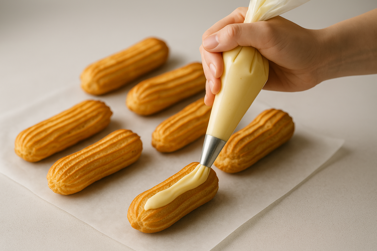 • Эклеры осели: духовку открыли рано или не досушили. Верните на 5–7 минут при 160–170 °C.