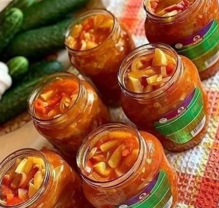 Это настолько вкусный и ароматный салат, что за уши от него не оттащишь. Откроете баночку зимой - и словно опять попадаете в яркое лето.