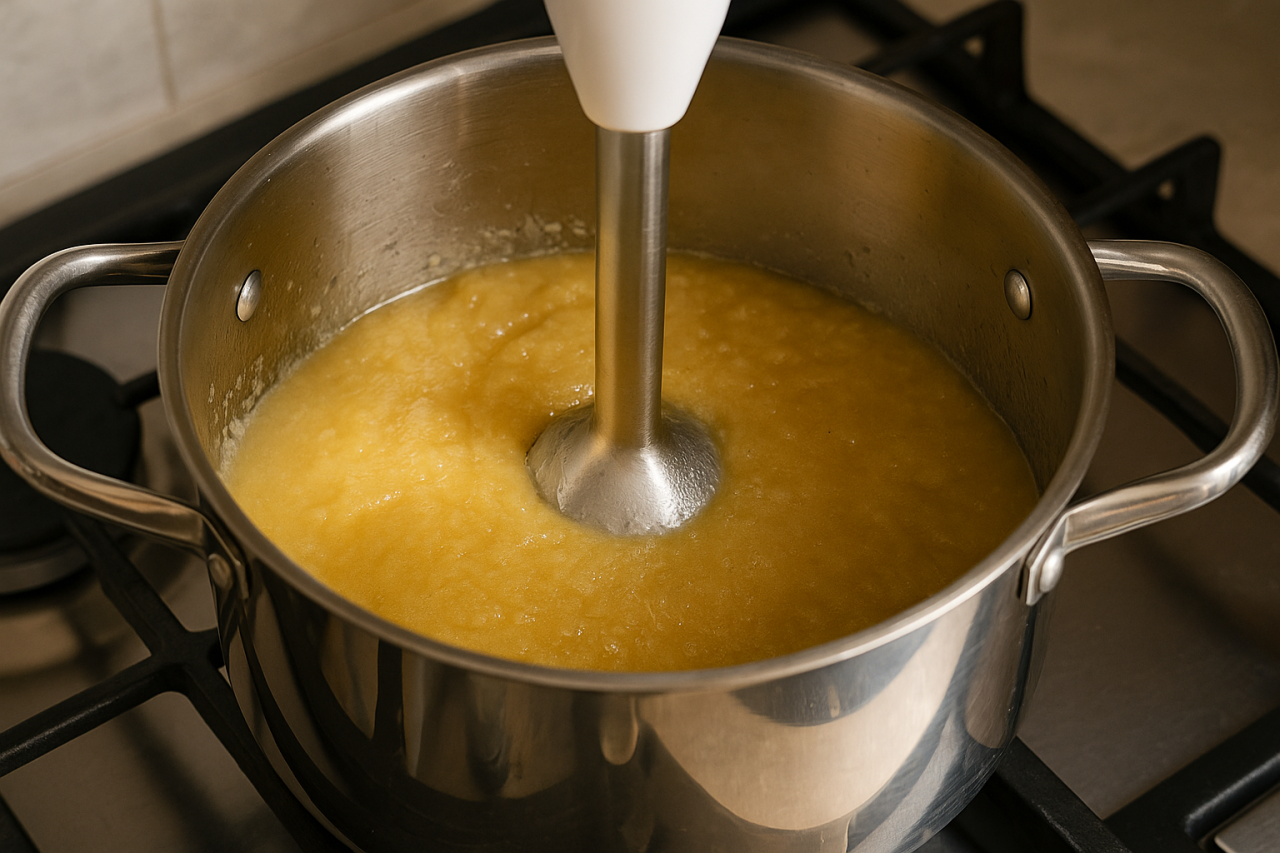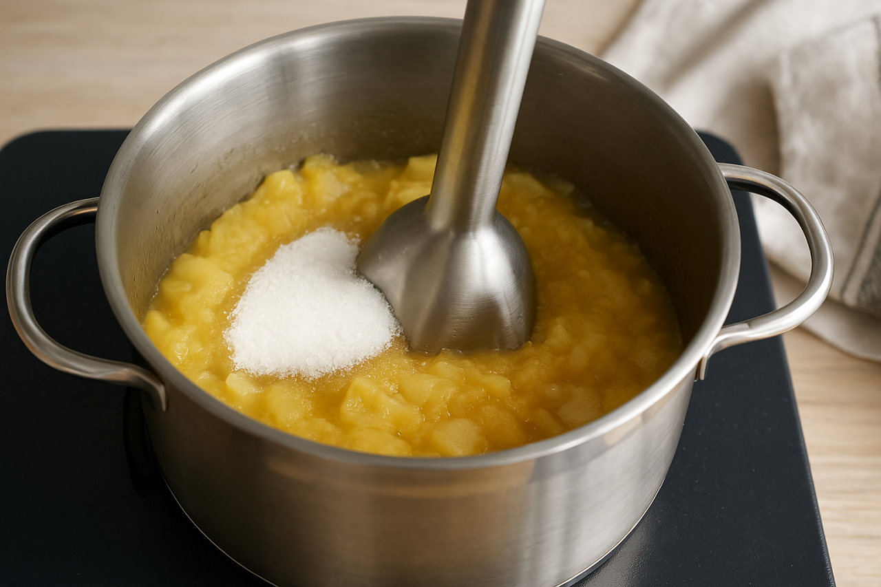 Если яблоки кислые, добавьте ложку мёда уже после остывания пюре - вкус станет мягче и богаче.