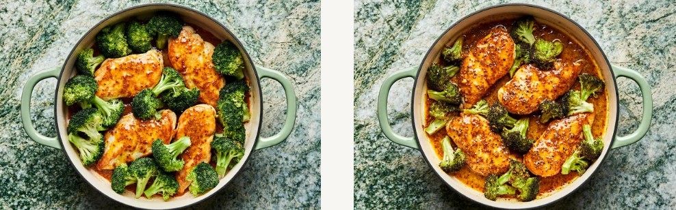 Запекайте в духовке до готовности курицы (внутренняя температура 74°C) и мягкости брокколи.