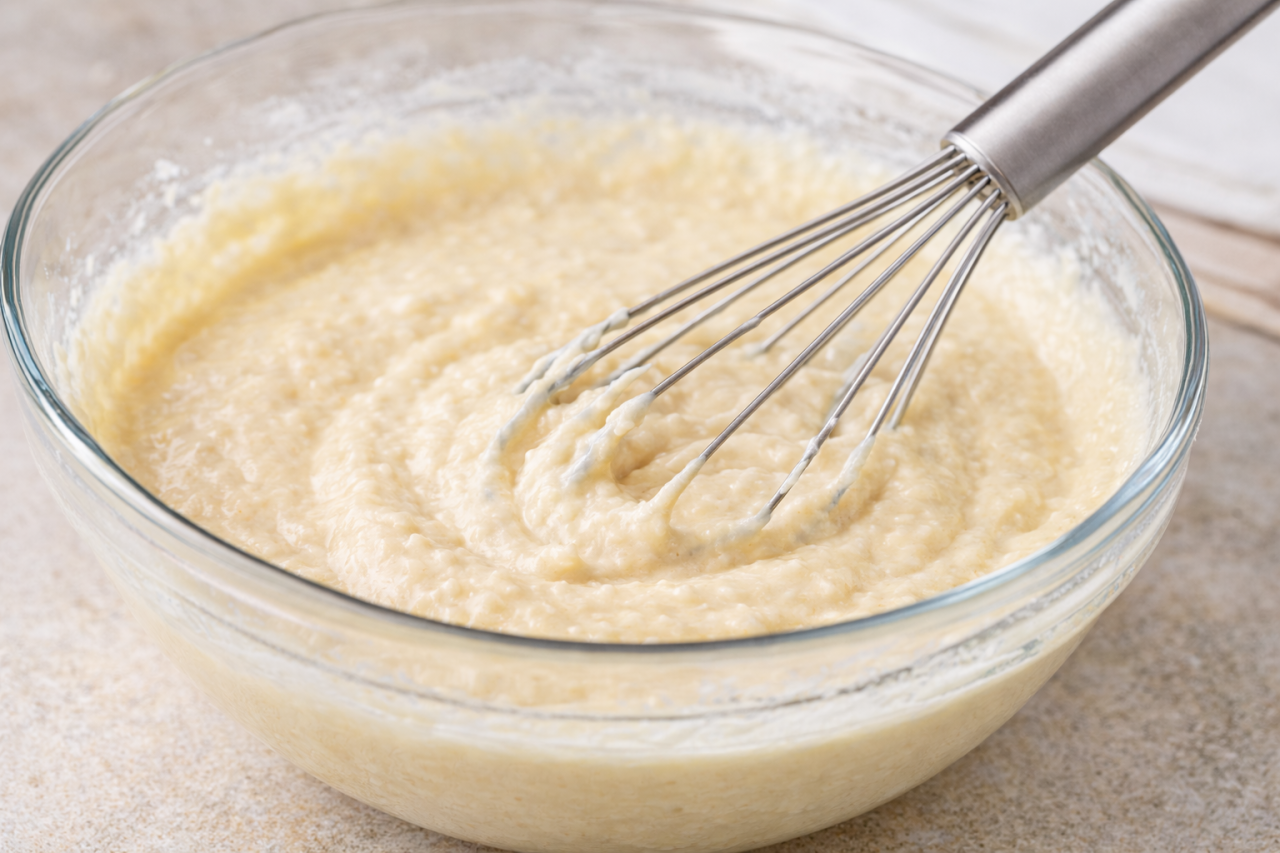 Не перебивайте массу слишком долго, достаточно добиться однородности, иначе текстура может стать плотнее.
