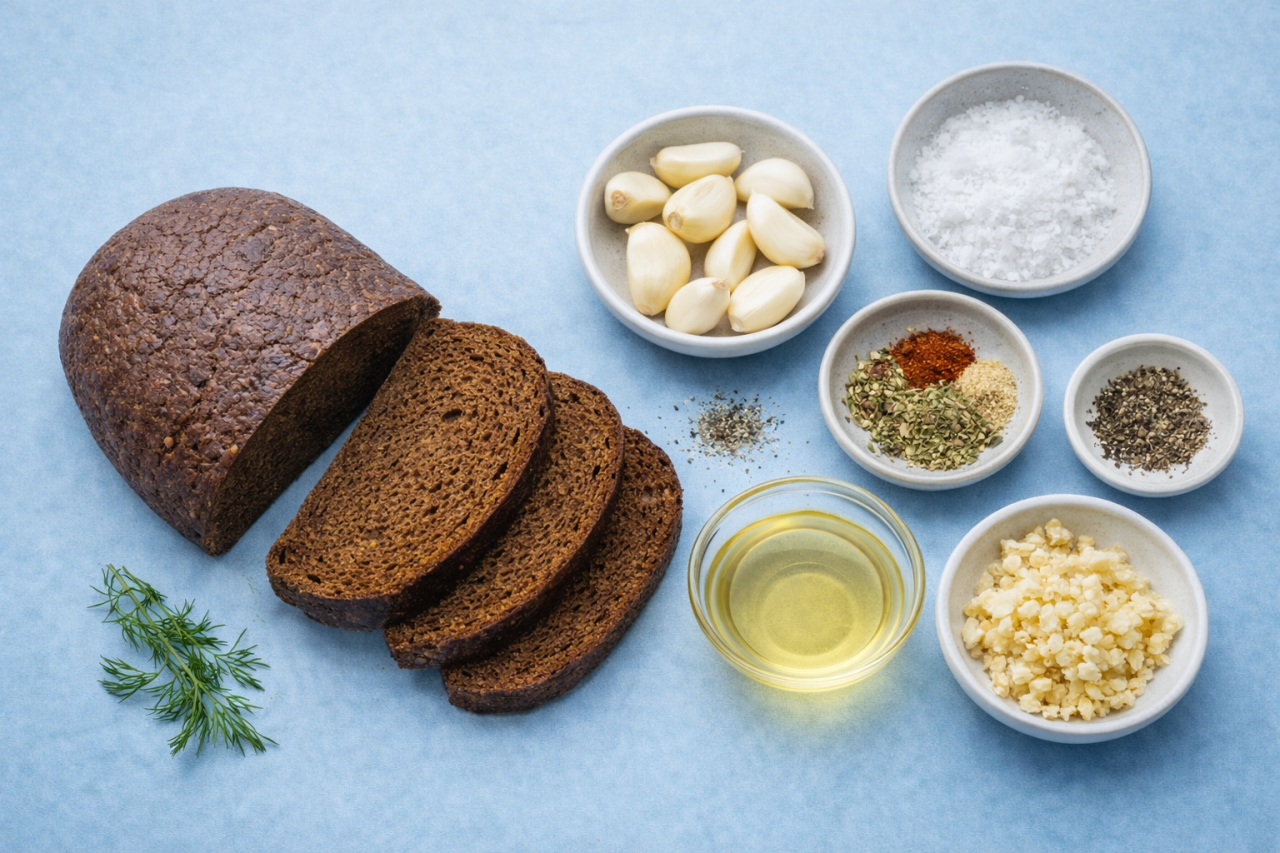 Точное авторство у этой закуски никто не закреплял, она из разряда «народных»: чёрный, чаще ржаной хлеб, чеснок, соль, масло, всё доступно и понятно. Во многих культурах гренки стали почти барной классикой, потому что это дешёво, быстро, ароматно, идеально сочетается с пивом и соусами. По сути, это родственник европейских крутонов, только с более ярким, «чесночным» характером и привычным нам чёрным хлебом.