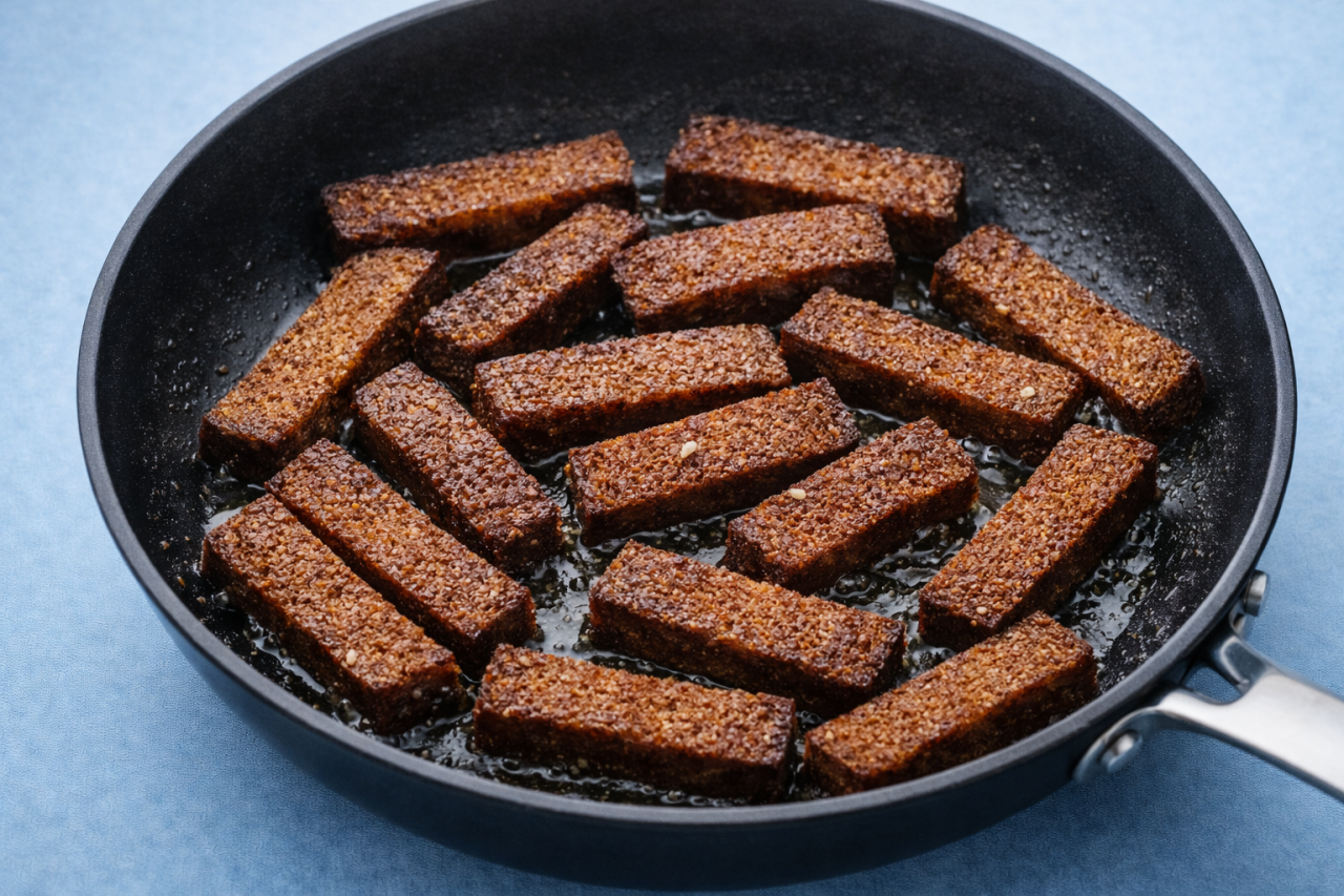 Чтобы вернуть хруст: 3–4 минуты в духовке при 180°C или 2–3 минуты в аэрогриле.