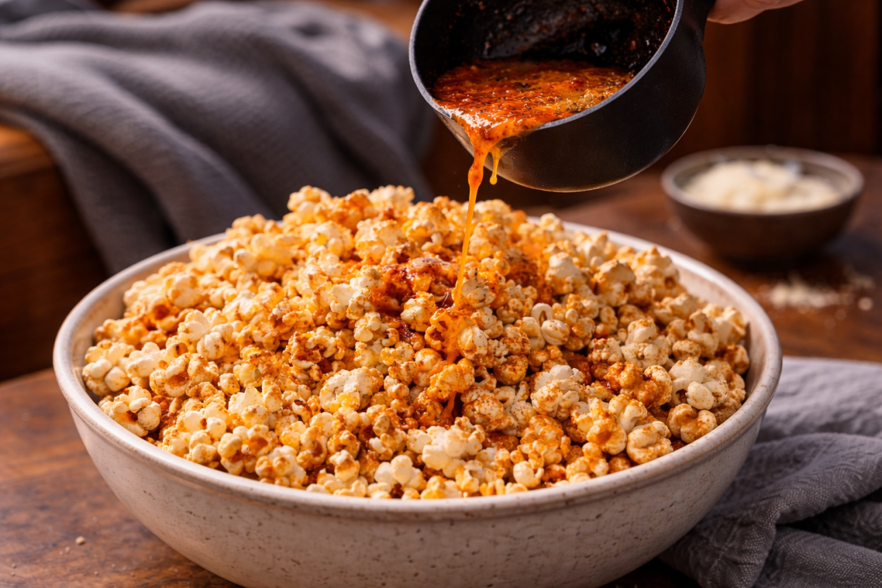 Главный секрет здесь простой: сначала даем специям раскрыться в жире, потом быстро и тщательно перемешиваем, а сыр добавляем не в горячую сковороду, а в миску. Так пармезан прилипает к попкорну, не превращаясь в липкие комки, и вкус распределяется равномерно.