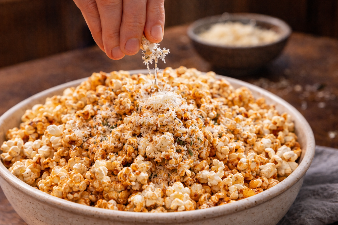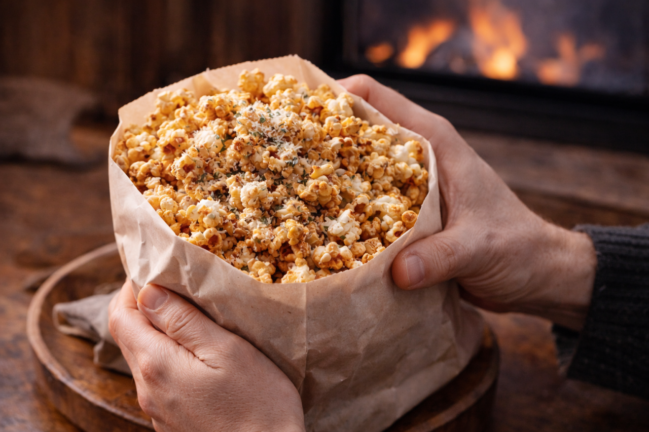 В нашей неофициальной рубрике «Перекус к сериалу» пополнение, сегодня делаем попкорн в пармезане и паприке. Он получается горячим, хрустящим и очень ароматным, с той самой сырной солоноватостью и мягкой папричной ноткой. Рецепт быстрый, без сложных шагов, зато с эффектом «съел одну горсть, и уже тянешься за следующей».