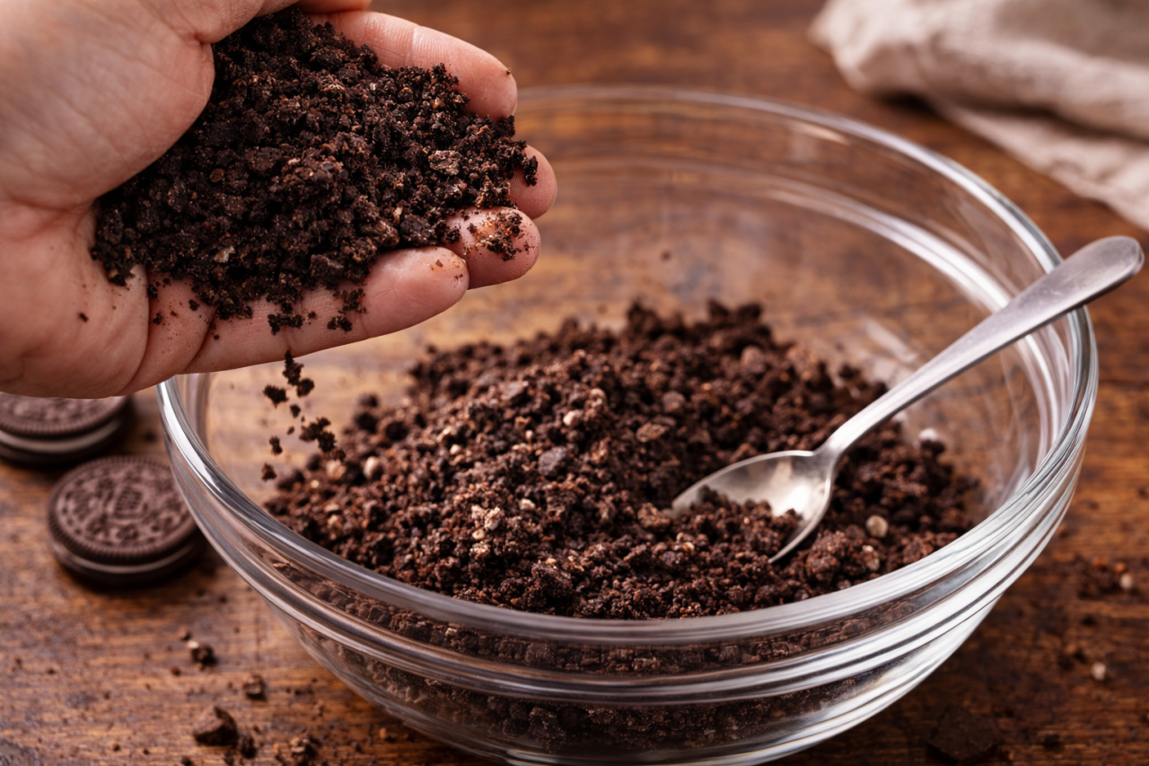 Крошка: делай не “пыль”, а смесь. Часть печенья в мелкую крошку для “песочной основы”, часть оставь кусочками, чтобы хрустело.