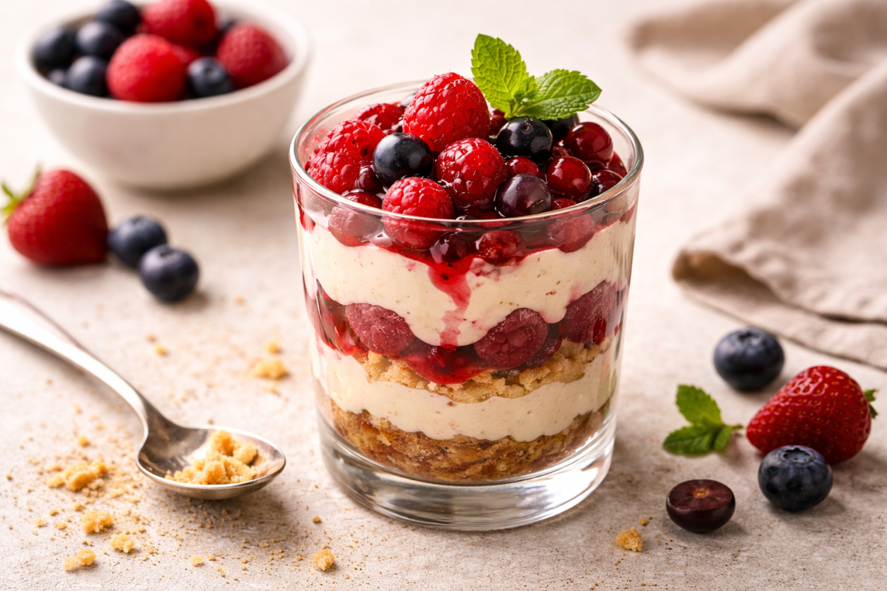 Хороший вариант, когда хочется чего-то нежного, но без ощущения тяжелого десерта. По вкусу это очень понятная история: крем, ягоды, крошка, и ничего лишнего.