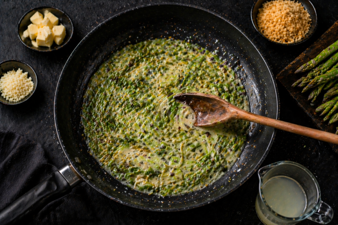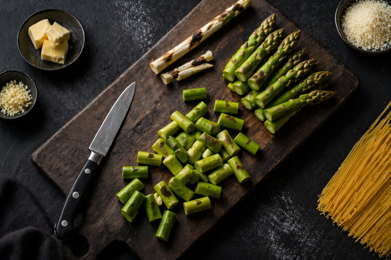 Это хороший весенний рецепт и для буднего ужина, и для красивого сезонного материала с пошаговыми фото. Все этапы понятные, аккуратные и очень фотогеничные: от подготовки спаржи до финальной тарелки.