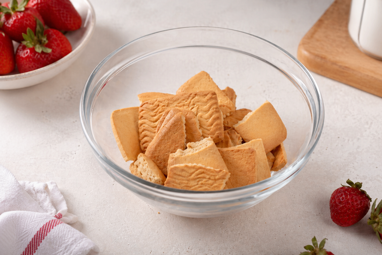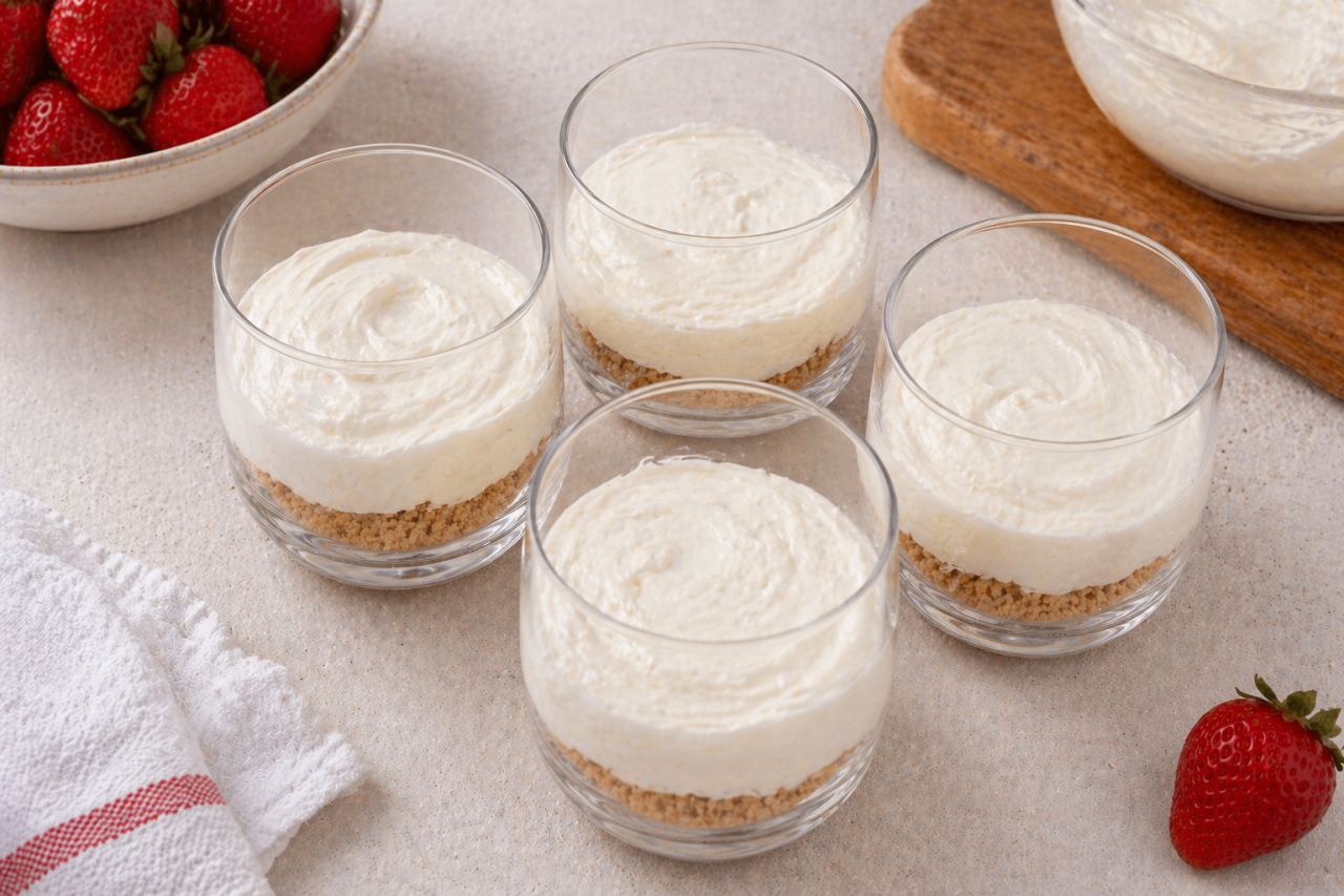 Клубника дает свежесть, кремовая основа делает вкус мягким, а печенье заменяет корж. Получается почти чизкейк, только без выпечки, без риска и без лишней суеты.