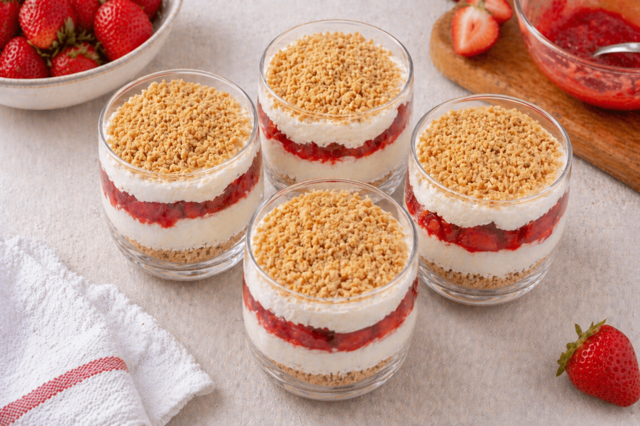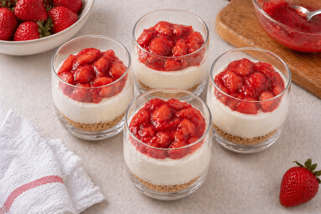 Ленивый чизкейк с клубникой в стакане, это тот самый рецепт, который легко запомнить и приятно повторять. Он не требует духовки, спокойно собирается из обычных продуктов и выглядит так, будто над ним старались гораздо дольше.