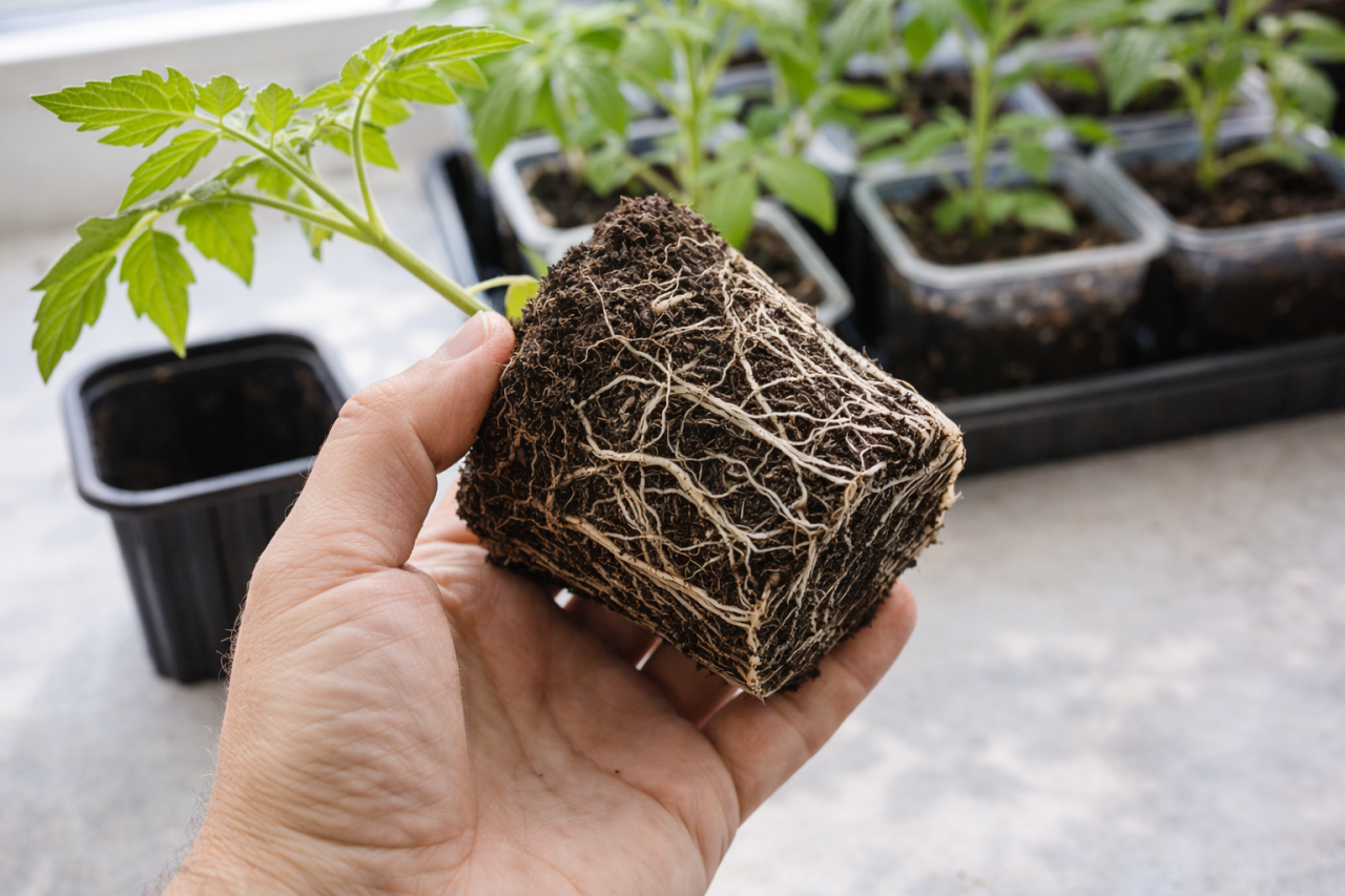 Рассада может выглядеть неплохо, пока корни не упрутся в стенки. Потом рост стопорится, листья желтеют, растение хуже приживается после высадки.