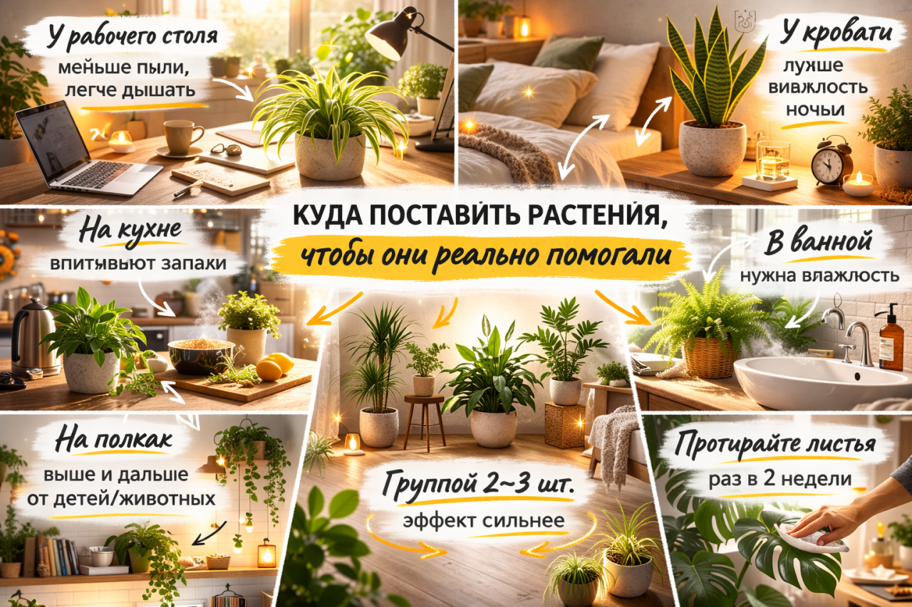 Если хотите “чтобы дышалось приятнее”, берите растения. Они добавляют живую зелень, смягчают ощущение сухого, “офисного” воздуха, и в целом делают дом лучше. Просто не ждите, что один горшок заменит проветривание.