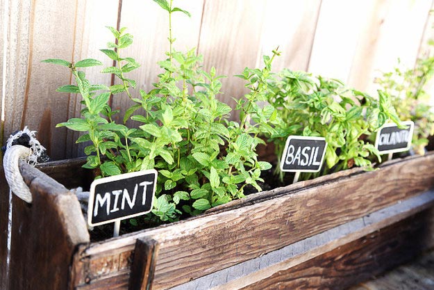Деревянный ящик с блошиного рынка или из овощного отдела - идеальная основа для мини-сада с травами. Такой переносной огород добавит участку особого шарма.