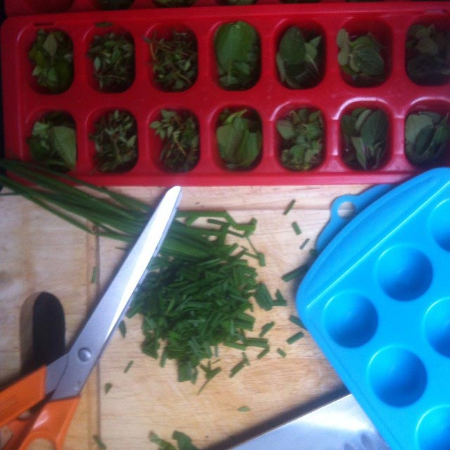 Если урожай зелени слишком велик, мелко порубите ее, залейте оливковым маслом или водой и заморозьте в формах для льда. Зимой такие кубики станут идеальной заправкой для супов.